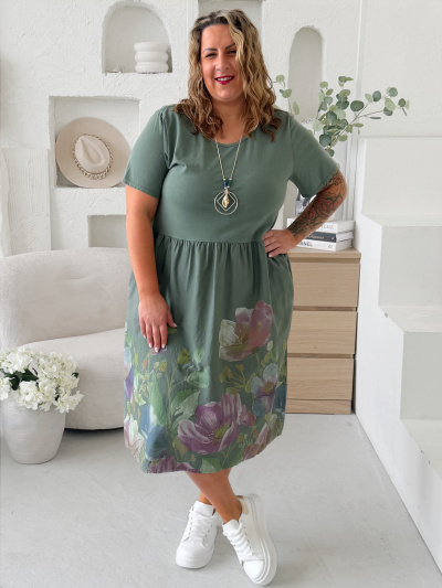 Balonové šaty Flower Pastel do 4XL - khaki⏰ Na cestě k nám na sklad, k odeslání do 5ti dnů575 Kč475 Kč bez DPH