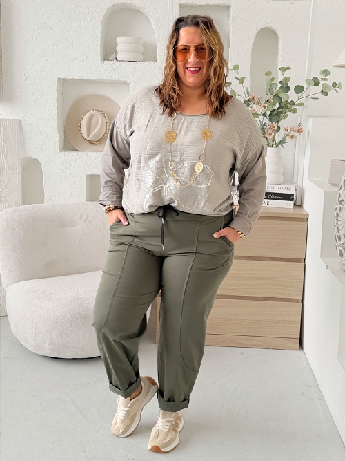 Barelové teplákové kalhoty Lora do 3XL - khaki🚚 Ihned k odeslání. Doručení do 5ti dnů495 Kč409 Kč bez DPH