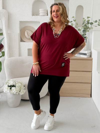 Bavlněné tričko do V Symbol do 4XL - vínové