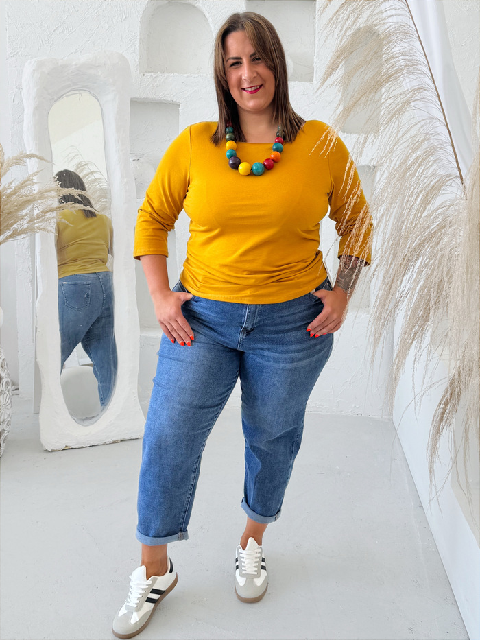 Bavlněné tričko s 3/4 rukávem do 3XL hořčicové