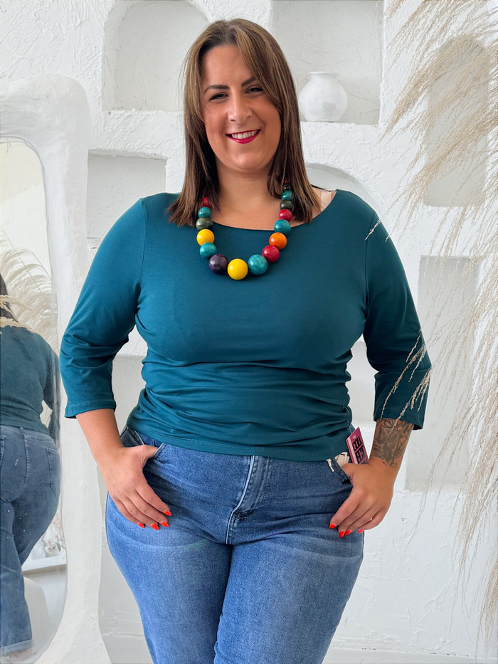 Bavlněné tričko s 3/4 rukávem do 3XL petrolej