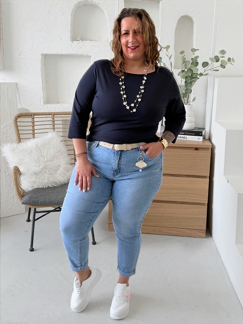 Bavlněné tričko s 3/4 rukávem do 3XL tmavě modré