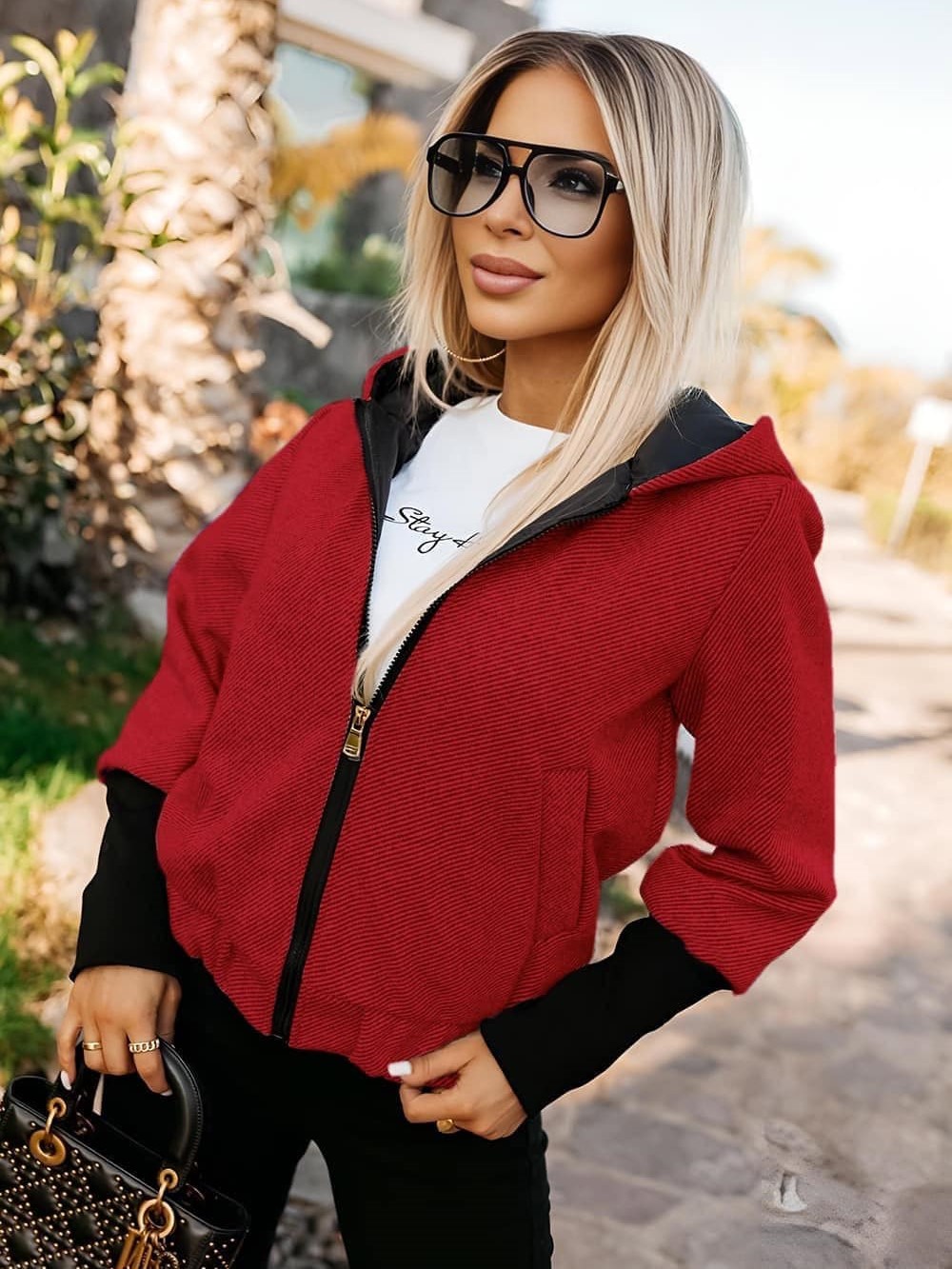 Bomber s kapucí na zip červený
