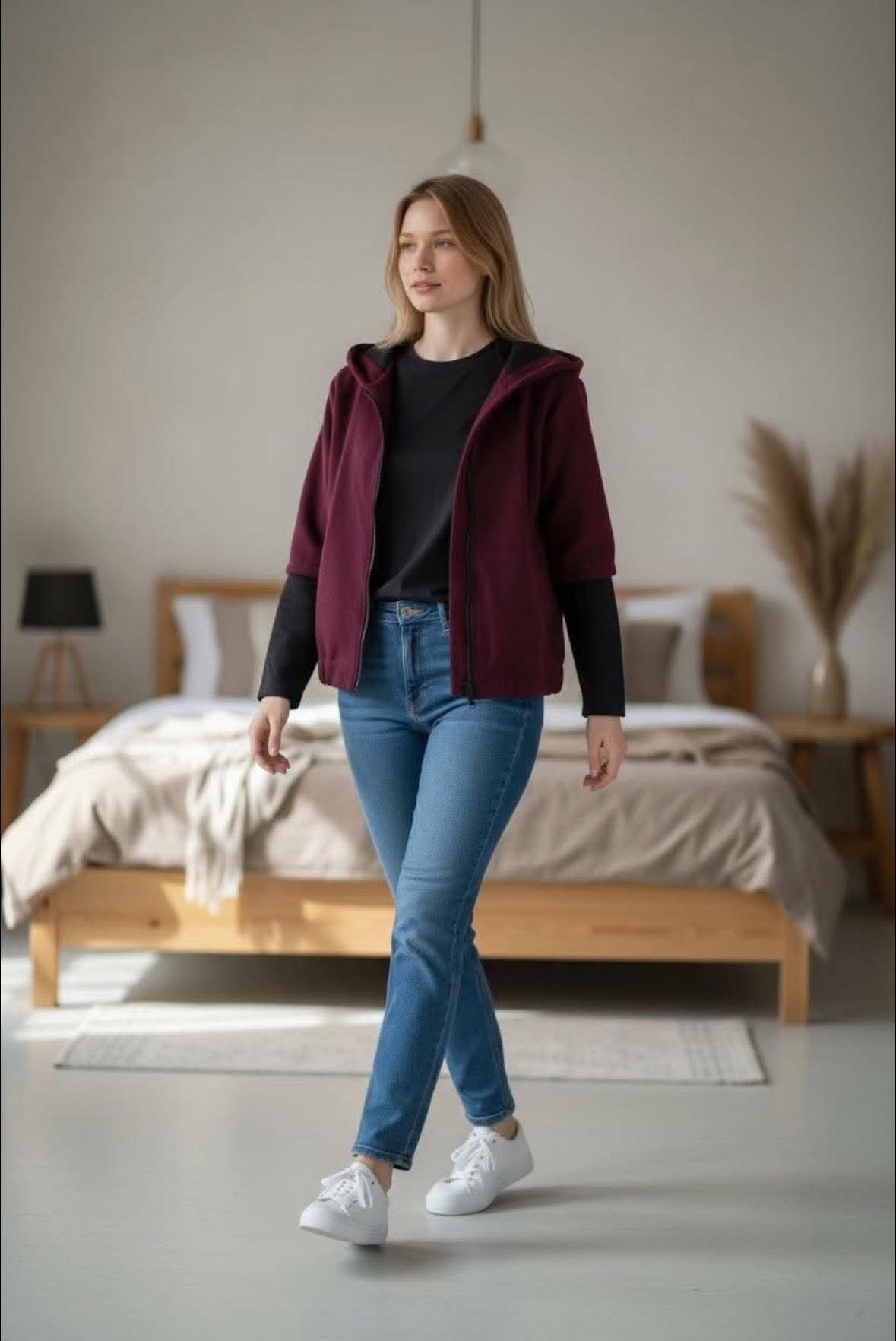 Bomber s kapucí na zip vínový