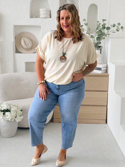 Naše modelka Zlatka má pro představu míry: prsa - 124cm, pas - 104cm, boky - 134cm, stehno - 66cm, paže - 34cm.