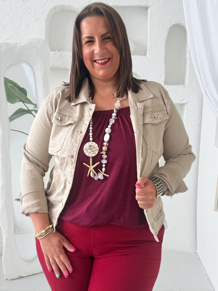 Džínová bunda elastická béžová do 4XL