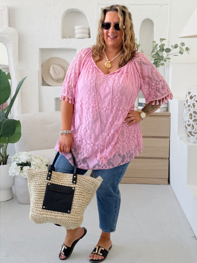 Krajková tunika Mendy do 4XL - baby růžová