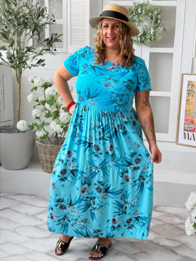 Květované maxi šaty Lora do 4XL - tyrkysové