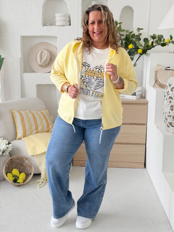 Máslová mikina na zip Jefry do 3XL - pastelově žlutá