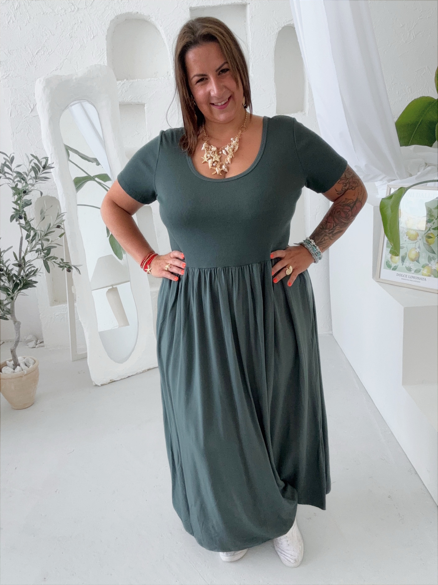 Maxi šaty Basic do 4XL šedozelené⏰ Na cestě k nám na sklad, k odeslání do 5ti dnů595 Kč492 Kč bez DPH