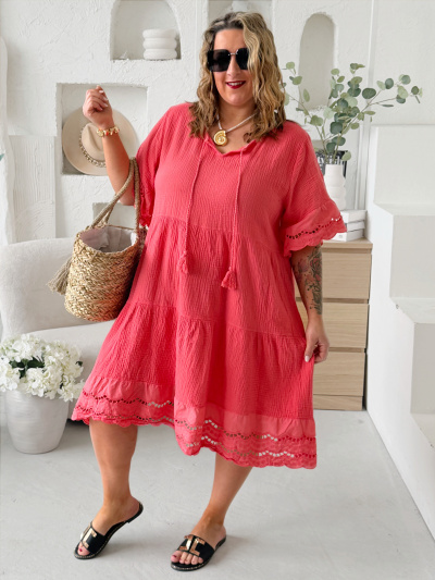 Mušelínové šaty Elvina do 4XL - losos tmavší