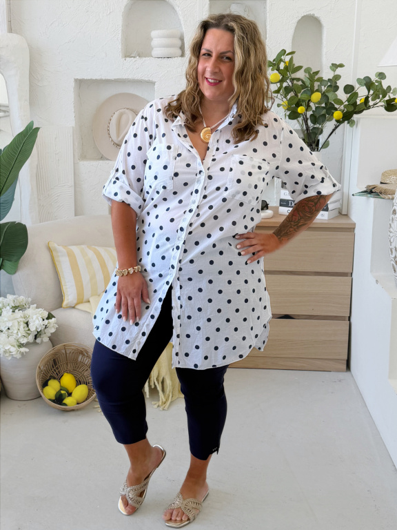 Prodloužená košile do 3XL puntik tmavě modrý