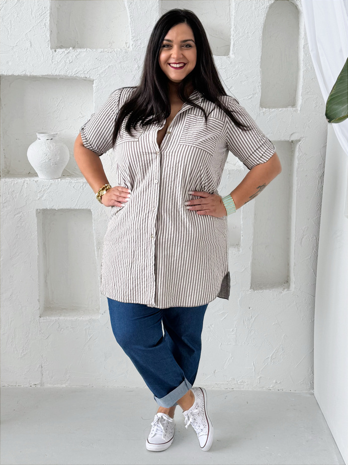 Prodloužená košile proužek capuccino⏰ Na cestě k nám na sklad, k odeslání do 5ti dnů545 Kč450 Kč bez DPH